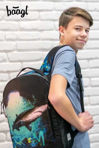 Découvrez le confort et un style durable avec le sac à dos BAAGL eARTh – Requin by LUKERO. Grâce à sa matière imperméable 100 % recyclée, votre équipement reste en sécurité par tous les temps, tandis que le graphisme saisissant au motif de requin attire l’attention au premier regard.