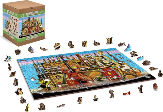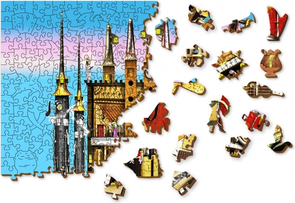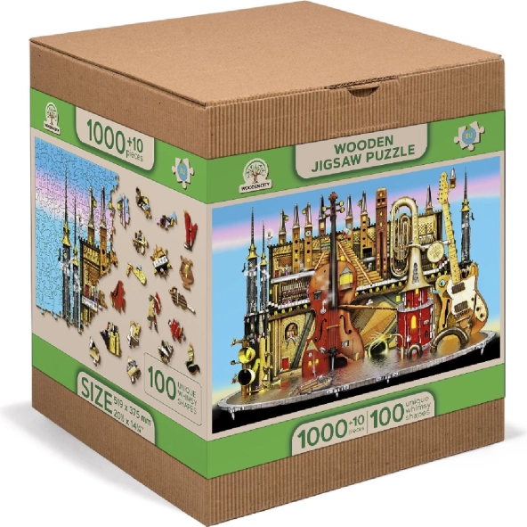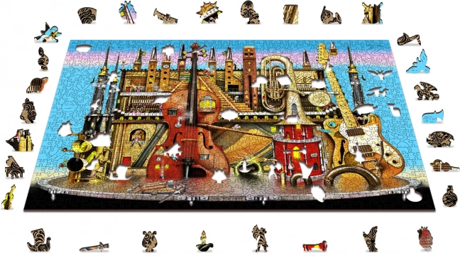Ce puzzle en bois haut de gamme propose un motif original de ville musicale avec instruments et tours, qui plaira aux adultes comme aux enfants curieux. Les pièces sont découpées au laser dans une plaque HDF solide (3–4 mm), avec des bords lisses sans échardes, et une partie d’entre elles adopte des formes spéciales d’animaux, de bâtiments et d’objets. Grâce à cela, l’assemblage est plus exigeant, mais aussi extrêmement amusant et visuellement impressionnant.