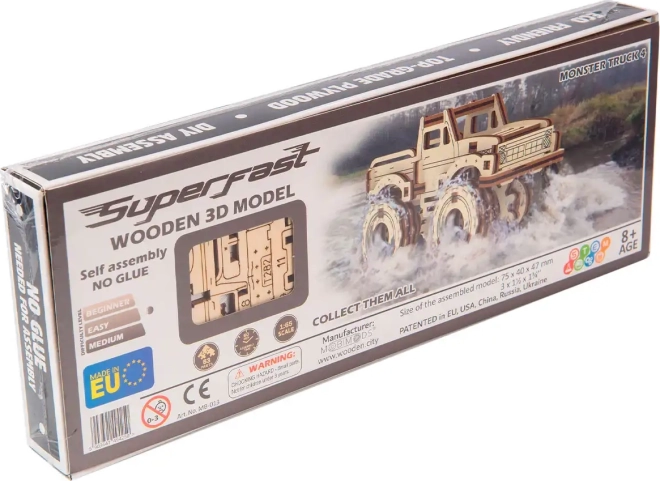 Ce puzzle 3D mécanique en contreplaqué de bouleau permet à chacun de construire un impressionnant modèle de monster truck sans colle ni vis. Grâce à sa conception réfléchie et à des découpes précises, l’assemblage est rapide et amusant, même pour les débutants. Le modèle fini, en bois naturel, se distingue comme décoration intérieure stylée et comme pièce de collection.