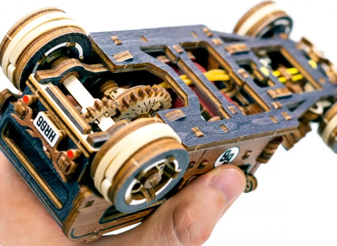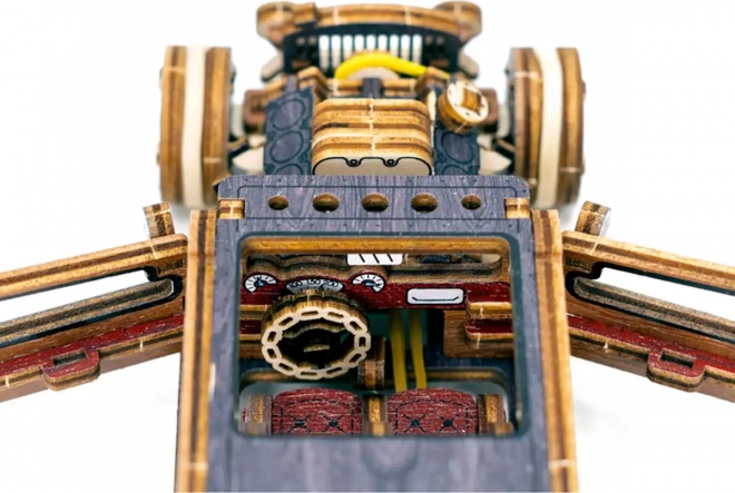 Ce modèle mécanique WOODEN CITY hot rod à l’échelle 1:32 offre une expérience authentique de construction et de mécanique. À l’intérieur, vous trouverez un moteur détaillé, un double siège et un levier de vitesses; en roulant, vous apprécierez le moteur à inertie et les roues de retour. Grâce à la découpe précise des pièces dans le contreplaqué de bouleau, tout s’emboîte parfaitement – sans une goutte de colle.