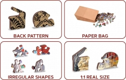 La conception recto-verso 2-en-1 propose deux défis en un : le recto avec illustration pour un assemblage classique et le verso à motif pour un assemblage guidé par les formes. La plaque HDF de 3 à 4 mm assure solidité, bords lisses sans échardes et longue durabilité. Vous trouverez également un modèle séparé à l’intérieur pour une construction plus confortable.