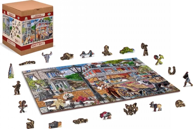 Profitez d’un assemblage captivant avec le puzzle en bois WOODEN CITY, qui apporte une scène colorée d’une rue historique animée. Des pièces spécialement façonnées avec de fins détails au laser renforcent le plaisir et l’esthétique – certaines pièces en forme d’animaux ou d’objets peuvent être dressées comme de petites figurines.