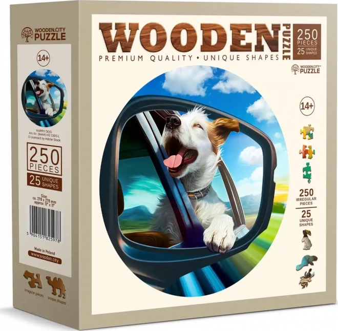 Profitez d’un puzzle en bois WOODEN CITY au motif d’un chien joyeux, réalisé avec une grande précision. La mise en valeur laser des détails souligne la beauté de l’image et certaines pièces en forme d’animaux peuvent être utilisées comme petites figurines indépendantes. Grâce à la diversité des formes, le puzzle présente une difficulté plus élevée, idéale pour celles et ceux qui recherchent un défi créatif.