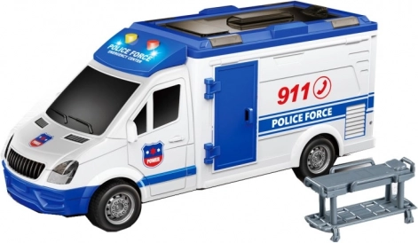 Vivez l’action avec cette voiture de police à friction à l’échelle 1:16 ! La voiture avance toute seule et offre des effets sonores réalistes et des effets lumineux comme des sirènes clignotantes.