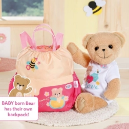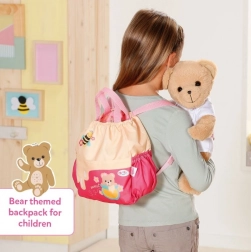 Les poches latérales pratiques accueillent toutes les petites affaires – tétine, biberon, couche ou petits accessoires. Le sac à dos peut aussi être utilisé comme petit sac pour transporter accessoires, couches et vêtements pour l’ourson ou les poupées BABY BORN. Convient aux enfants dès 1 an pour des jeux créatifs durables avec peluches et poupées.