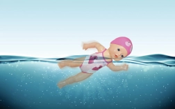 Adorable poupée nageuse BABY born My First Swim Girl de 30 cm, idéale pour jouer dans la baignoire et la piscine. Grâce à sa conception étanche et à son corps léger, elle nage et se déplace dans l’eau, stimulant l’imagination et la motricité fine des enfants dès 12 mois. Son maillot de bain et son bonnet colorés en font une compagne parfaite pour s’amuser au bain au quotidien.
