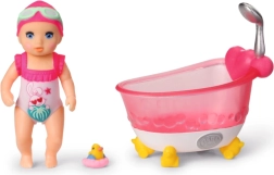 Adorable mini poupée BABY born Minis Amy en maillot de bain rose, livrée avec une petite baignoire aux pieds en forme de canard, une mini douche et un adorable coussin en forme de cœur. Une petite canard en caoutchouc est également incluse pour rendre l’heure du bain encore plus amusante.