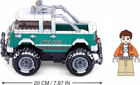 Le modèle est conçu pour une construction ludique et une conduite dynamique. Il comprend une benne ouverte pour le chargement, des phares de toit et un arceau de sécurité à l’avant. Les figurines (1 pc) ont une forme réaliste et des articulations mobiles – la tête et les poignets pivotent, la figurine tourne à 360° au niveau de la taille et les jambes se déplacent vers l’avant lors de la marche.
