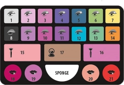 - Palette de 14 fards à paupières, 2 teintes de blush, une poudre et 4 gloss pour les lèvres