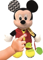 Adorable peluche Baby MICKEY offrant aux enfants des câlins tout doux et un jeu intelligent. Grâce aux éléments Montessori – fermeture éclair, gros bouton, languette avec trou et scratch – elle favorise la motricité fine, la perception sensorielle et l’exploration autonome.