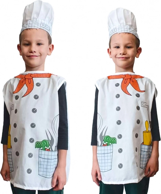 Le costume comprend un tablier blanc et une toque de chef, garantissant que votre enfant se sente comme un véritable cuisinier.