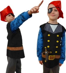 Le costume comprend des éléments de base comme un gilet, un bandana et un cache-œil, qui confèrent une apparence de pirate authentique.