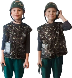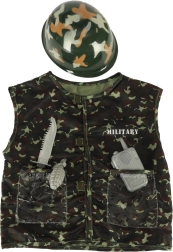 Avec ce costume militaire, votre enfant se sentira comme un véritable soldat. Le costume comprend un gilet de camouflage et un casque militaire et est conçu pour résister aux jeux les plus fous.