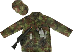Costume d'uniforme militaire est idéal pour passer un bon moment lors d'un bal masqué ou simplement pour agrémenter le quotidien. Grâce à cet ensemble, un enfant peut devenir un soldat courageux, que ce soit à la maison ou lors d'un événement scolaire. Le costume est fabriqué dans un matériau confortable, adapté aux enfants de 3 à 8 ans.