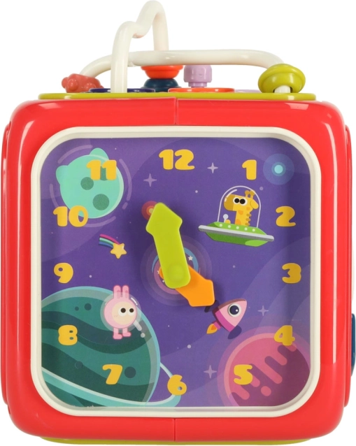 Coloré et convivial, ce cube attire l'attention des enfants avec ses aiguilles d'horloge mobiles et ses éléments interactifs.