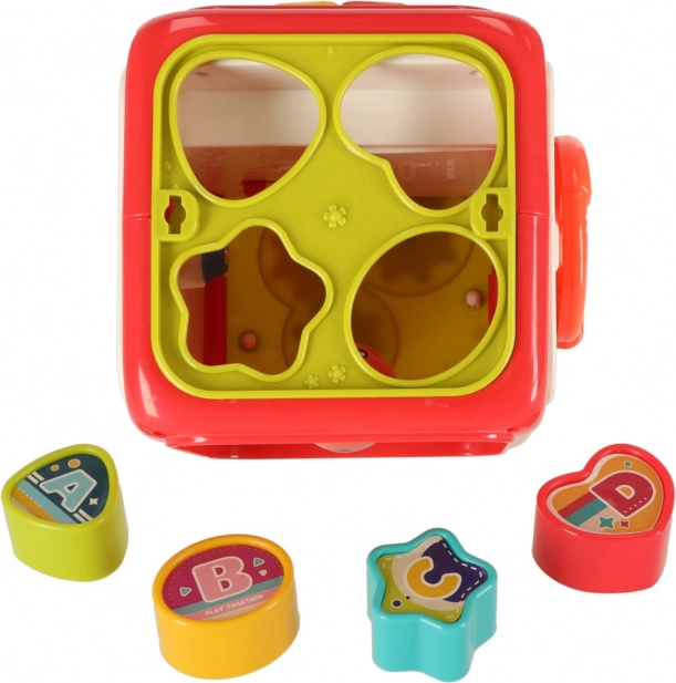 - Comprend un cube et quatre blocs qui favorisent la reconnaissance des formes et des couleurs.