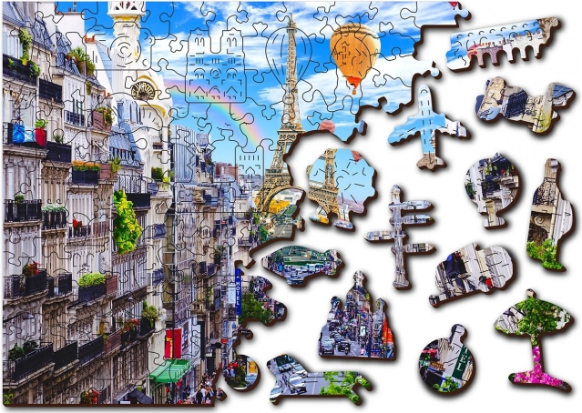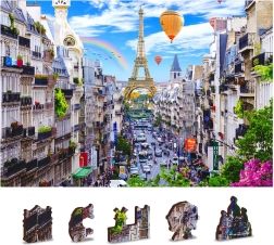 Le puzzle en bois Paris Animée de WOODEN CITY est unique grâce à sa construction réversible et ses pièces spécialement sculptées, qui animent toute la scène lors de l'assemblage. L'assemblage est plus difficile à cause des pièces de formes variées, mais en même temps plus amusant. Il représente un défi même pour les passionnés expérimentés d'assemblage.