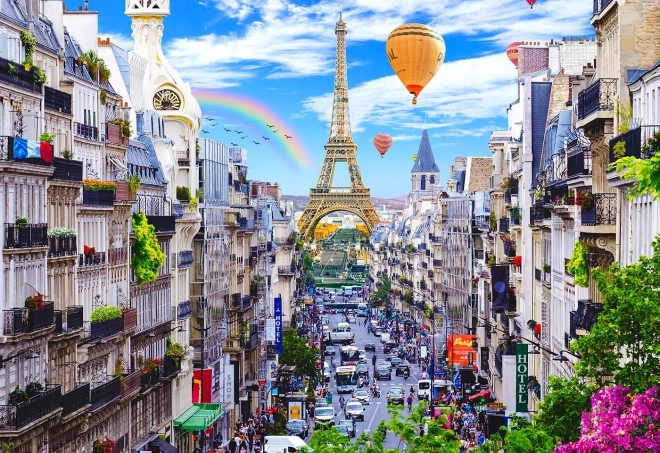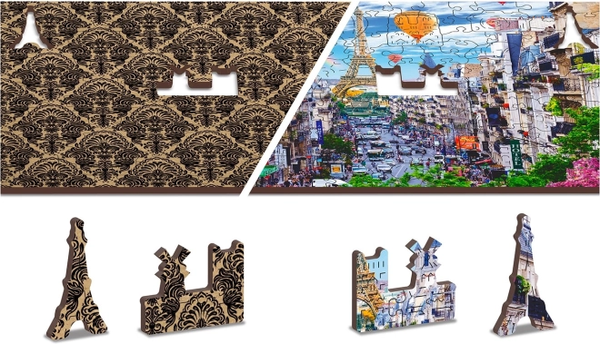 Les deux faces du puzzle promettent une expérience différente. D'un côté, vous serez charmé par le motif coloré de Paris. De l'autre côté, vous pourrez vous fier à des motifs répétitifs pour un assemblage par forme.