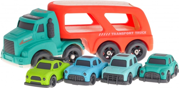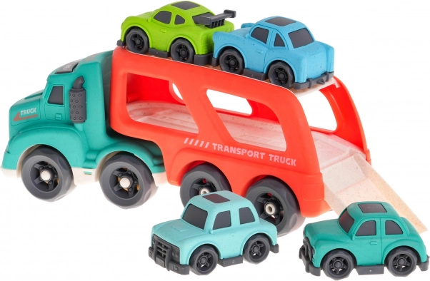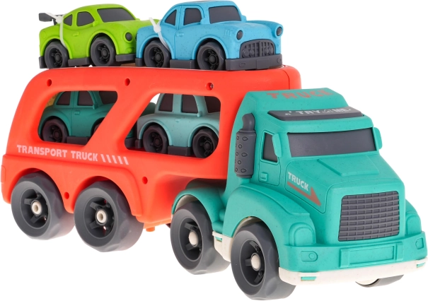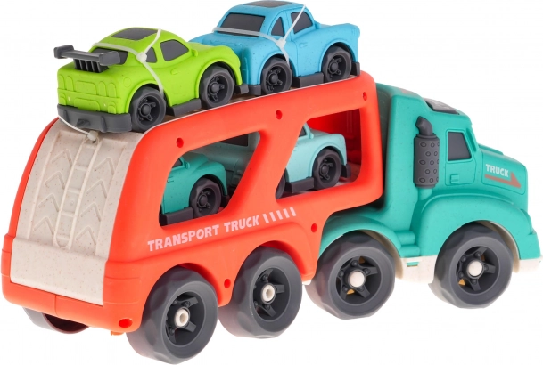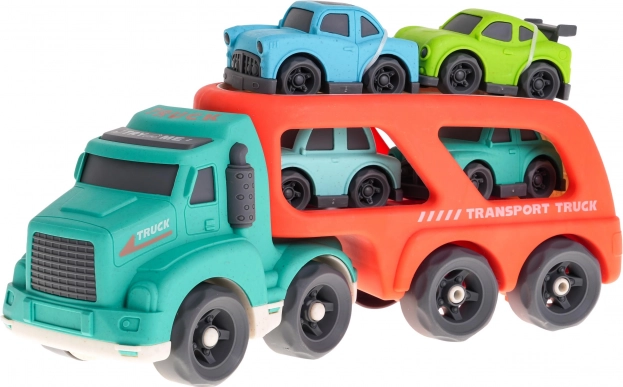 Le transporteur peut être facilement détaché et utilisé séparément. Le set comprend quatre petites voitures de couleurs différentes pour varier les jeux.