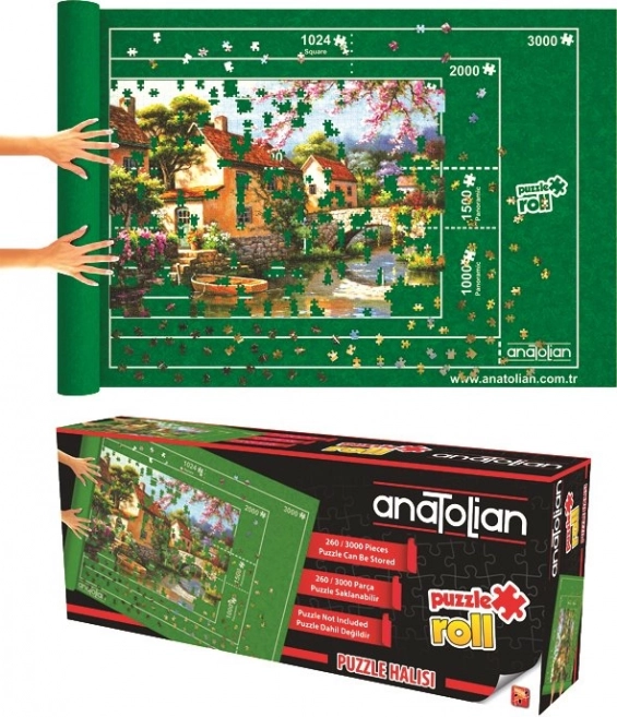 Des contours spéciaux pour puzzles Anatolian sont imprimés directement sur le tapis vert et incluent des variantes pour 260, 500, 1000, 1500, 2000 et 3000 pièces, y compris des puzzles carrés et panoramiques.