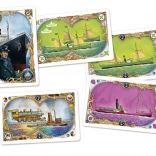 - Collection de sets de cartes, construction de routes, gestion de ressources, accomplissement d’objectifs (billets), construction de ports