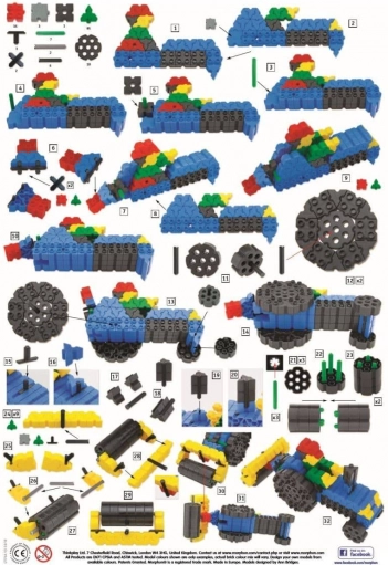 Les jeux de construction Morphun proposent certaines des séries de briques les plus intéressantes du marché. Les produits de cette marque sont destinés aux enfants plus âgés qui savent déjà utiliser de petites pièces. Ils changent la façon de voir la construction – comparées aux briques classiques et courantes, leurs possibilités sont bien moins limitées. Dans le cas de l’ensemble Junior Xtra, des éléments de connexion supplémentaires en forme de T et de L sont disponibles. Grâce à eux, l’enfant développe sa créativité et s’exerce à transformer ses idées imaginaires en réalité. Des roues sont également incluses, permettant de créer des constructions typiquement appréciées des garçons. Si votre enfant n’a jamais joué avec ce type de construction, le guide d’inspiration fourni l’aidera à réaliser ses premières créations.