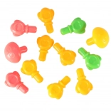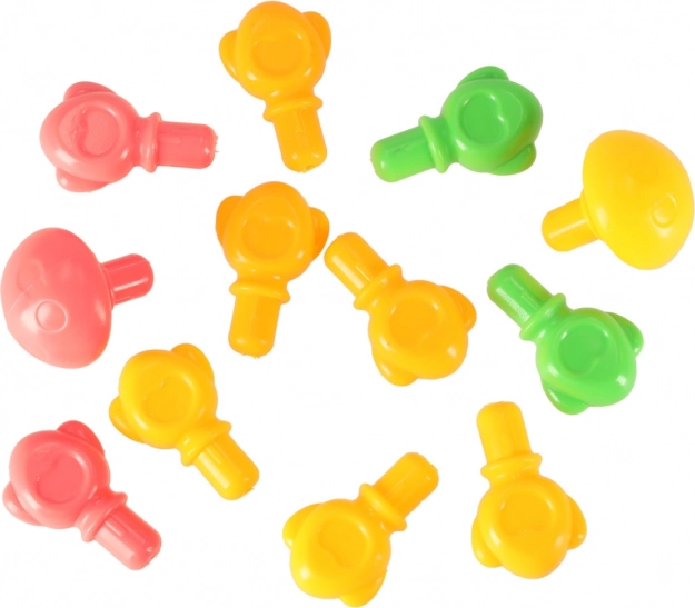 Les chevilles colorées favorisent la reconnaissance et le tri des couleurs. Certains trous sont marqués de chiffres, ce qui encourage les premiers essais de comptage.