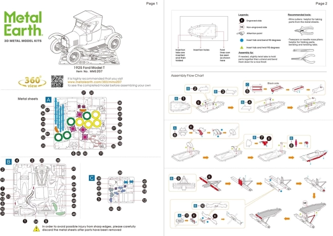 Profitez d’un travail métallique précis et de détails authentiques d’une légende de l’histoire automobile. Le modèle de la gamme Metal Earth est réalisé à partir de plaques d’acier prédécoupées que vous retirez, pliez et encliquetez – sans colle. Le résultat est une miniature solide et spectaculaire de la Ford Model T Runabout de 1925.
