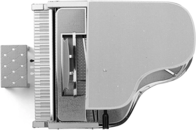 Les pièces gravées au laser restituent fidèlement le clavier, les pédales et la surface du piano pour un rendu particulièrement réaliste.