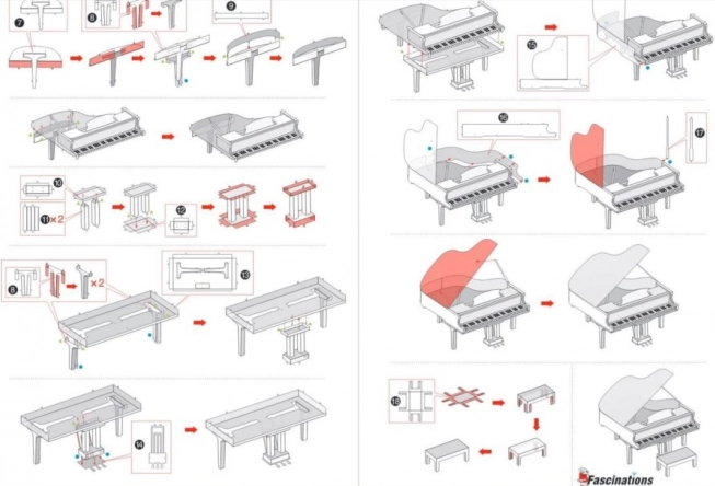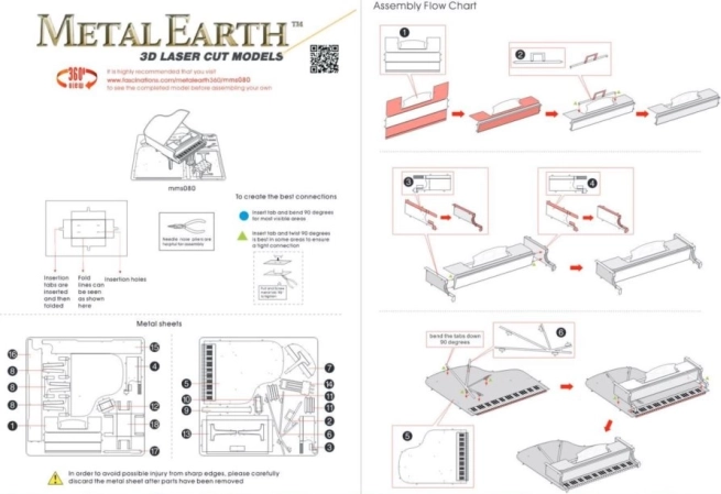 Le piano fini, d’environ 7,5 × 6,8 × 5,9 cm, deviendra une décoration remarquable à la maison, au bureau ou dans une vitrine scolaire. L’emballage comprend 2 plaques d’acier et une notice illustrée ; pour l’assemblage, nous recommandons de petites pinces coupantes et une pince plate fine (non incluses).