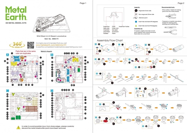 Un défi palpitant, le plaisir du montage et un résultat éblouissant – voilà les modèles METAL EARTH ! Modèle de la collection Far West pour tous les fans du Far West ! Construire le puzzle 3D METAL EARTH demande de la patience et de l’habileté. Le résultat obtenu compense largement l’effort fourni ! Les répliques miniatures sont une décoration particulièrement impressionnante et captivante, non seulement à la maison, mais aussi au bureau ou à l’école. À partir de plaques d’acier carrées (11 x 11 cm), vous obtiendrez un modèle fascinant, richement détaillé. L’aspect authentique des puzzles 3D METAL EARTH est rendu possible par une gravure laser minutieuse. L’emballage contient 4 plaques en acier et une notice de montage. Les outils ne sont pas inclus. PROCÉDURE DE TRAVAIL : Détachez les pièces des plaques métalliques, si nécessaire à l’aide d’une petite pince coupante (non incluse). Les pièces s’assemblent grâce à des verrous formés par une languette et un trou. Pliez la languette à l’aide de petites pinces fines (non incluses) et assemblez progressivement tous les verrous jusqu’à obtenir une pièce maîtresse très réaliste ! Âge recommandé : à partir de 14 ans.