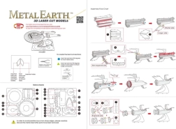 La construction demande de la patience et de l’adresse, mais la récompense est un modèle réaliste et minutieusement travaillé d’environ 12,7 × 6 × 6 cm. L’emballage comprend 2 plaques d’acier avec pièces et un manual d’assemblage détaillé. Outils non inclus – nous recommandons de petites pinces coupantes et des pinces plates/pincettes pour des pliages et verrous précis.