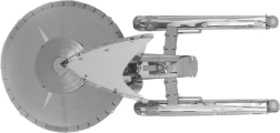 Miniature fidèle de l’U.S.S. Enterprise NCC-1701 avec des proportions soignées – section disque, pylônes et nacelles de propulsion se distinguent grâce à la structure métallique.
