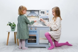 La plaque de cuisson, le four, le micro-ondes et l’évier créent un environnement authentique. Les boutons rotatifs et les touches encouragent les enfants à explorer et à jouer avec leurs sens.