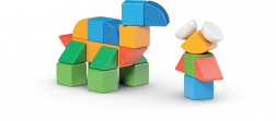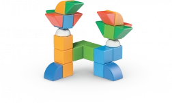 Le set comprend des cubes magnétiques, trois formes magnétiques spéciales et quatre roues – tout pour créer des animaux, des personnages et de petits véhicules.