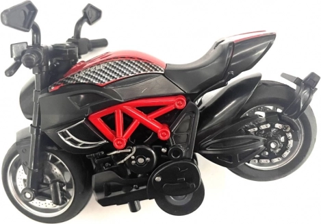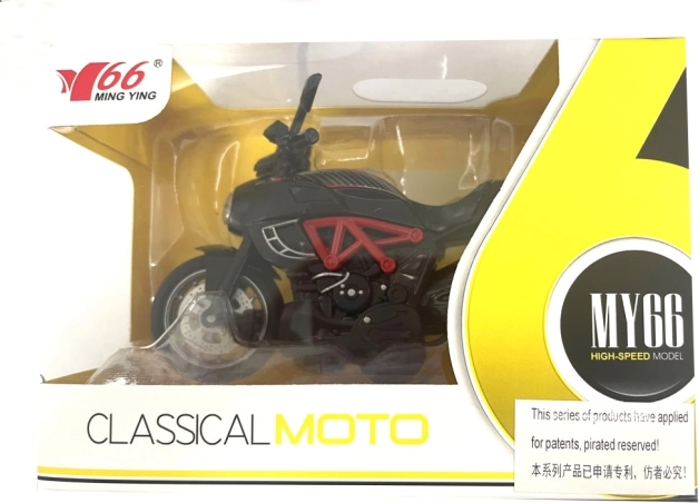 Tirez et partez avec cette moto en plastique réaliste à l'échelle 1:14. Idéal pour les collectionneurs ou comme élément décoratif.