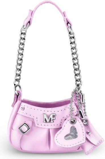 Accents métalliques, chaînes et breloques confèrent aux mini sacs un aspect réaliste et une touche luxueuse.