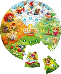 Le puzzle Quatre saisons de la marque Puzzlika séduit par son design moderne et créatif et est destiné aux enfants dès 2 ans. Ce puzzle assemblé forme une grande image ronde de 28 cm de diamètre, représentant des activités extérieures caractéristiques de chaque saison. Ce jeu éducatif aide les enfants à développer leur pensée logique, leur imagination et leur motricité fine.