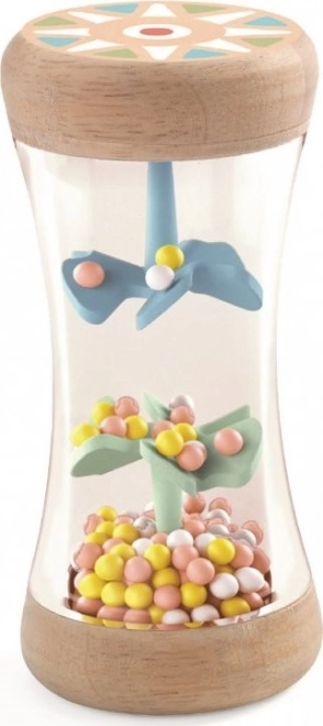 Djeco hochet en bois avec perles arc-en-ciel et hélices