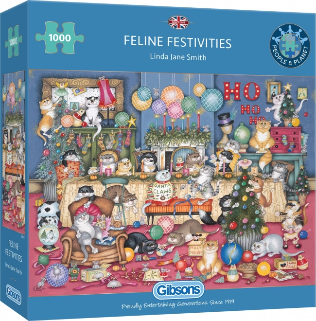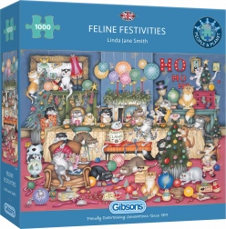 GIBSONS Puzzle Fêtes félines réjouira tous les amoureux des chats. Ce puzzle contient 1000 pièces qui composent ensemble une scène féline éblouissante.