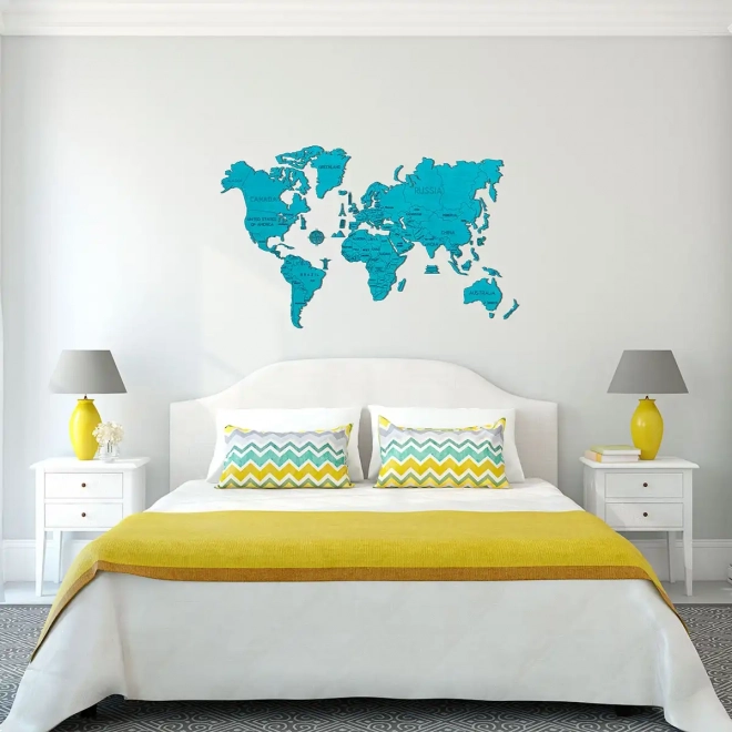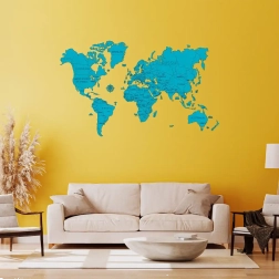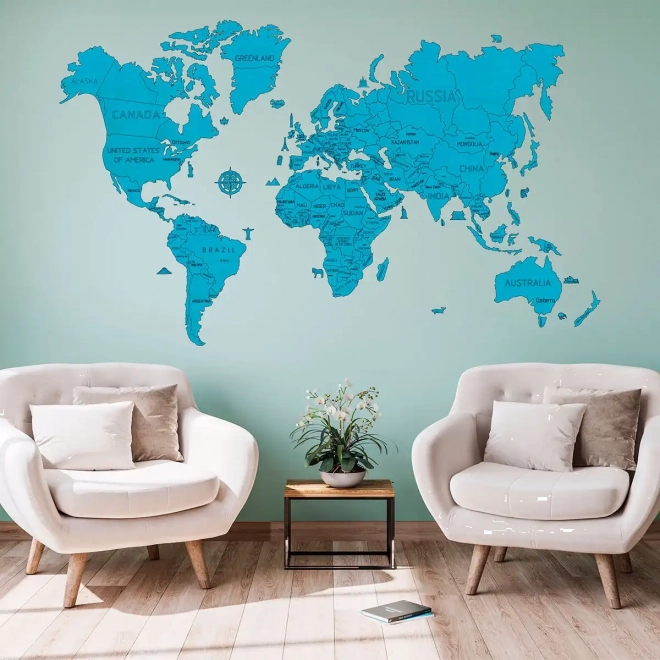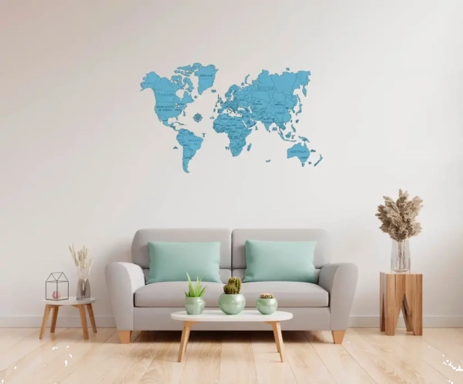 Fabriquée en matériaux bois écologiques et travaillée avec le sens du détail, la carte est légère, durable et agréable au toucher – le bois est suffisamment tendre pour y piquer des mini-drapeaux. L’installation est rapide et simple : assemblez et placez au mur à l’aide de rubans adhésifs double face. Les dimensions de la carte assemblée sont de 1200 × 800 mm, une taille idéale au-dessus d’un canapé, d’une table ou d’un lit.