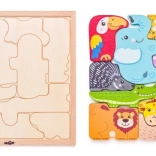 Ce puzzle en bois sur le thème des animaux exotiques est un premier casse-tête idéal pour les plus petits. Les grandes pièces colorées se tiennent facilement en main et aident les enfants à entraîner la motricité fine, la coordination et la pensée logique. Chaque pièce présente des couleurs vives et un design convivial, favorisant la perception visuelle et la reconnaissance des formes.