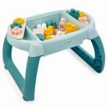 Table pour enfants avec briques intégrées, idéale pour développer la motricité fine ainsi que la reconnaissance des couleurs et des formes. Contient 22 pièces d’accessoires.