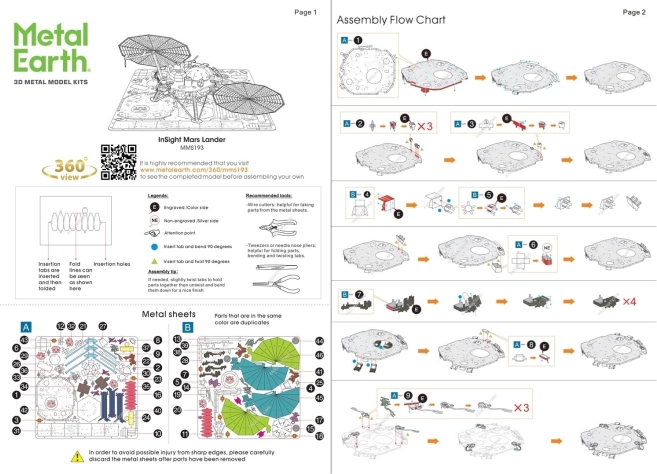 L’emballage comprend des instructions détaillées avec un schéma de montage et le plan des plaques métalliques pour faciliter l’assemblage du modèle.
