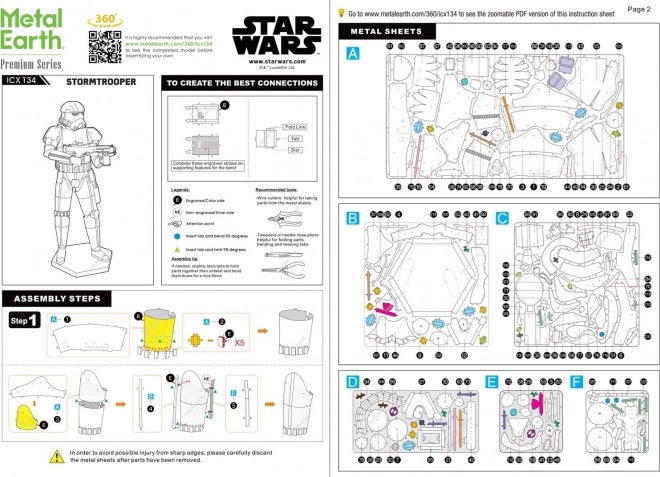 Le coffret comprend trois plaques métalliques avec pièces découpées, une pince fine et un mode d’emploi détaillé. Pour relier les pièces, utilisez les ergots et une pince plate fine (non incluse).