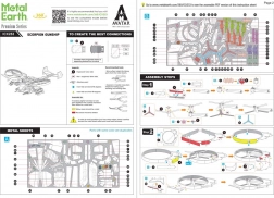 Les composants se détachent des plaques et s’assemblent grâce à des verrous à languettes – sans colle. Nous recommandons de petites pinces coupantes et des pinces plates fines pour des plis nets et des ajustements précis. Le modèle fini mesure environ 14 × 13,2 × 4,9 cm et complète parfaitement la collection des fans du film, de la technologie sci‑fi et des modèles métalliques.