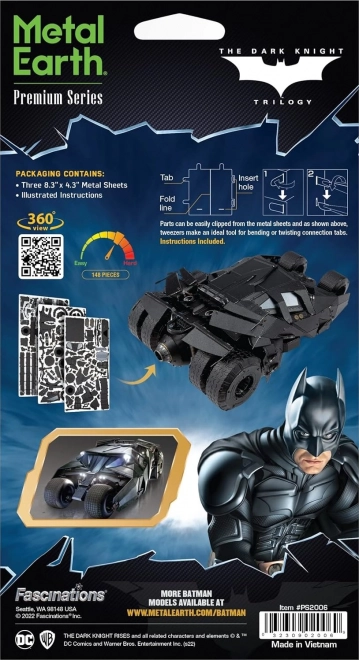 Construisez le véhicule iconique BATMAN Tumbler de la gamme Metal Earth Premium Series. Les puzzles 3D en métal avec gravure laser offrent des détails précis, un rendu impressionnant et un défi amusant pour les loisirs créatifs. Idéal comme décoration de collection et cadeau pour les fans.