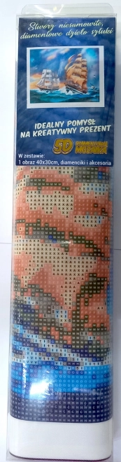 Peinture diamant – mode d’emploi : La face supérieure de la toile est enduite d’adhésif et recouverte d’un film transparent. Retirez le film progressivement par zones au fur et à mesure de l’application des strass. La toile comporte des symboles indiqués dans la légende fournie, renvoyant au sachet de strass correspondant marqué d’un numéro. Versez les strass du sachet dans la coupelle. Prélevez de la cire avec la pointe du stylet afin que les strass adhèrent facilement. Appliquez les strass sur le motif, puis reversez-les dans le sachet et continuez avec la couleur suivante.