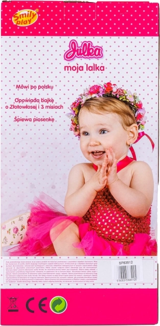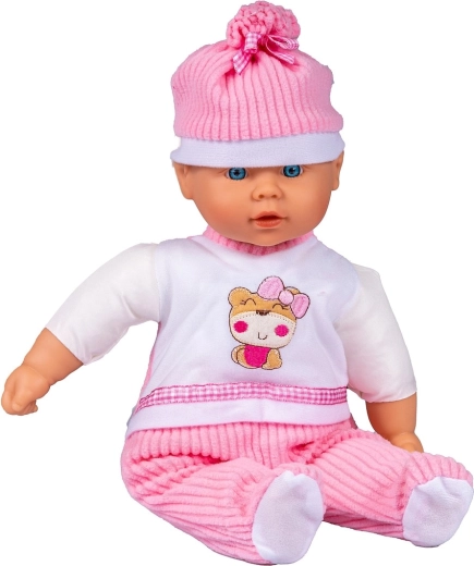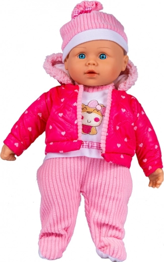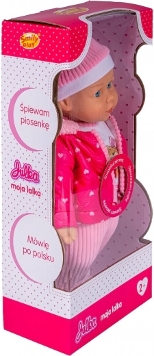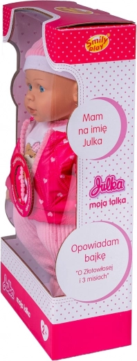 La poupée Julka adore quand on s’occupe d’elle et qu’on l’emmène en promenade. La poupée souple est vêtue d’un bonnet, d’une écharpe, d’une combinaison avec un pantalon à rayures et d’une veste matelassée rose à capuche, bordée d’un tissu rayé assorti au pantalon.