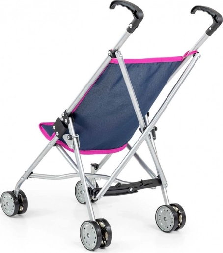Grâce au mécanisme de pliage type « parapluie », la poussette se plie aisément à plat et se range dans une armoire ou le coffre de la voiture. Une sécurité anti-pliage involontaire renforce la sûreté pendant le jeu. Le modèle Prestige Navy, dans une élégante teinte bleu marine, est un choix idéal pour les petits soigneurs de poupées.